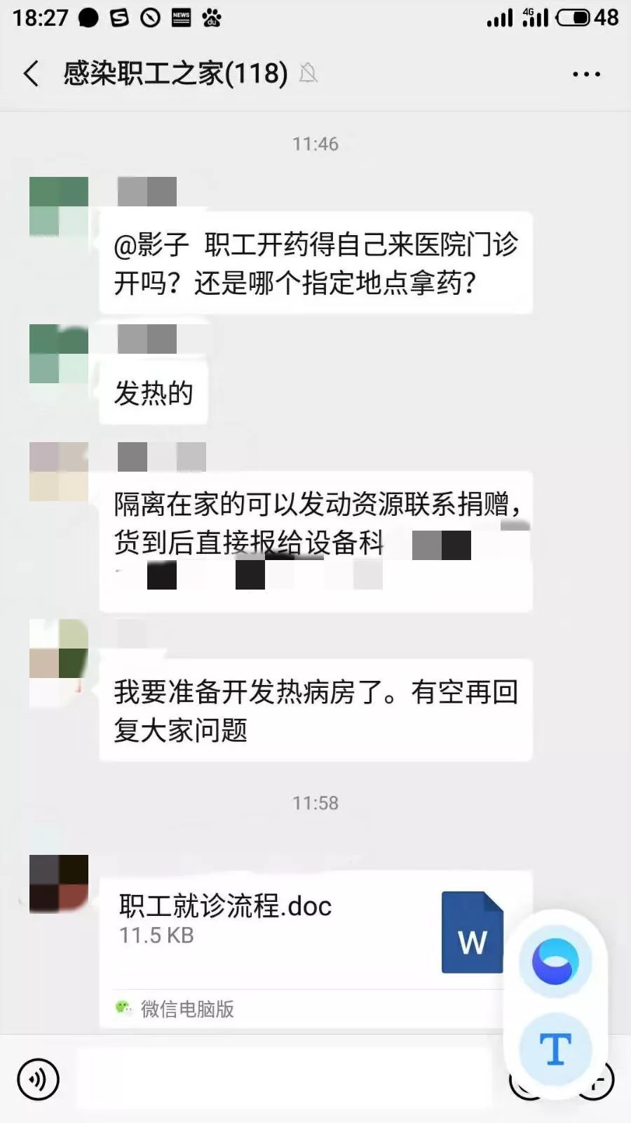 这个名为“职工感染之家”的群里人数每天都在增加。受访者供图
