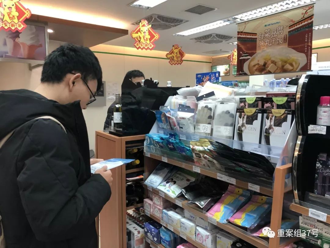 今日上午,北京南站便利店内,一位男士正在挑选口罩。新京报记者 张静姝 摄