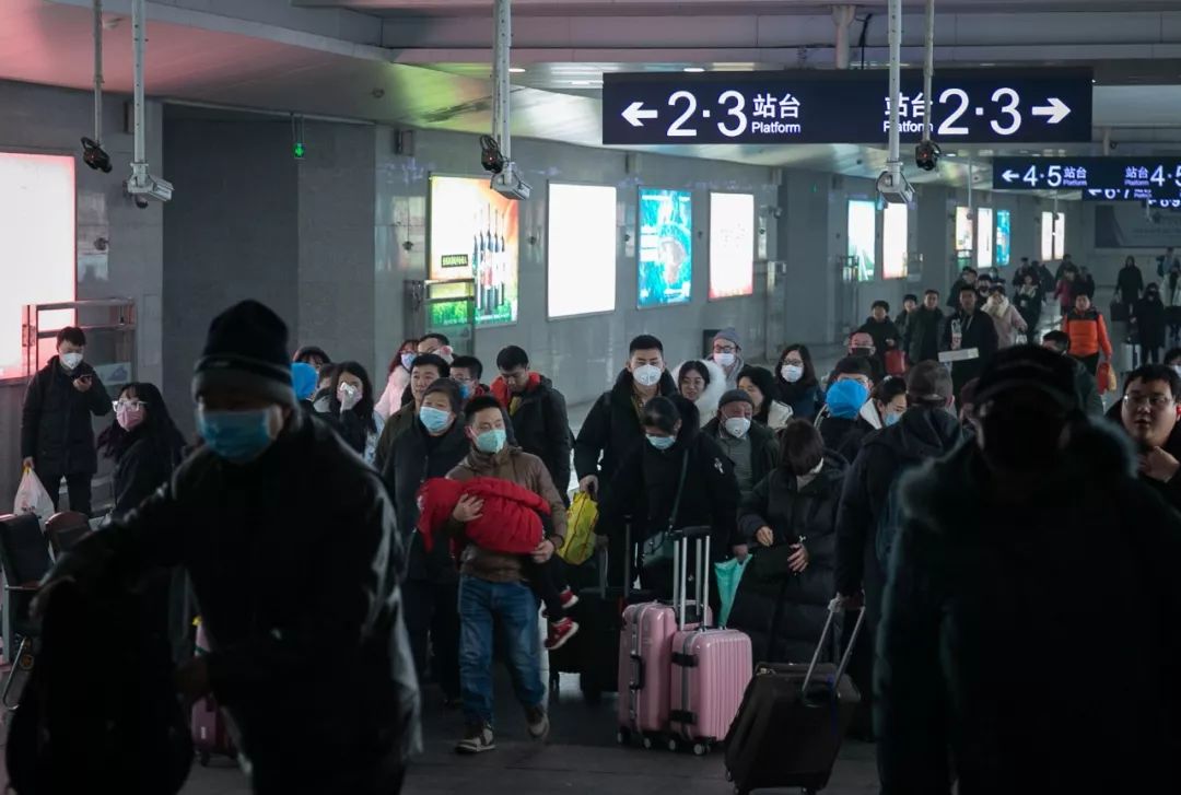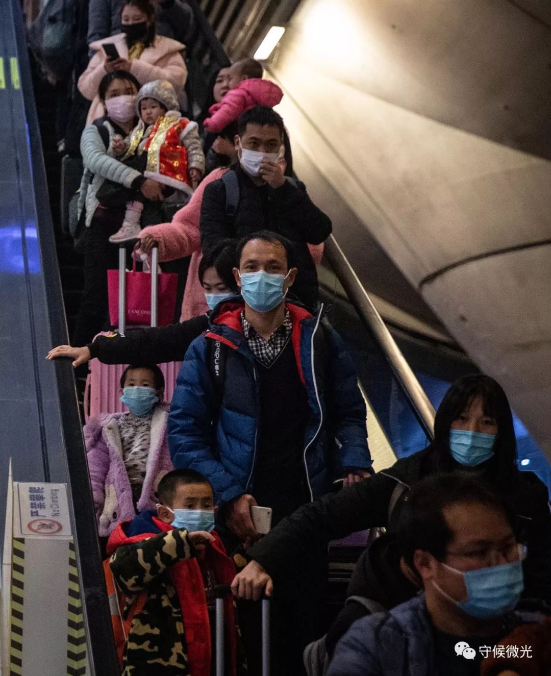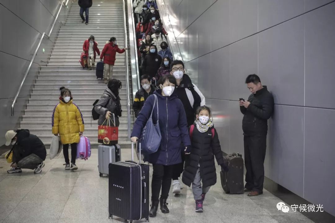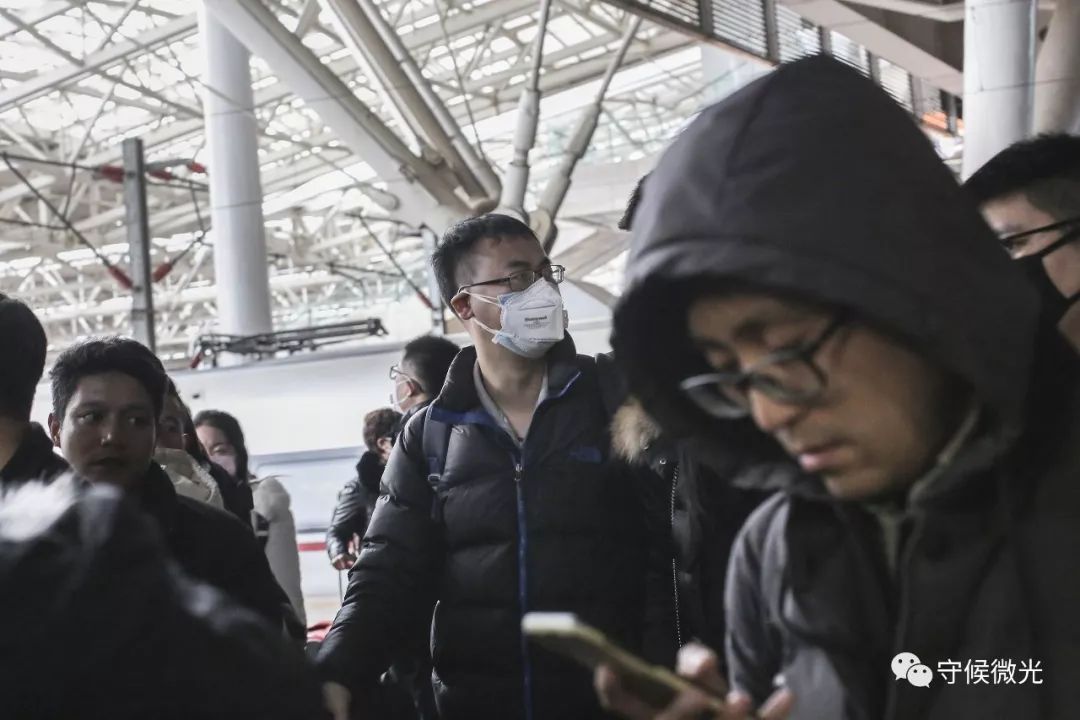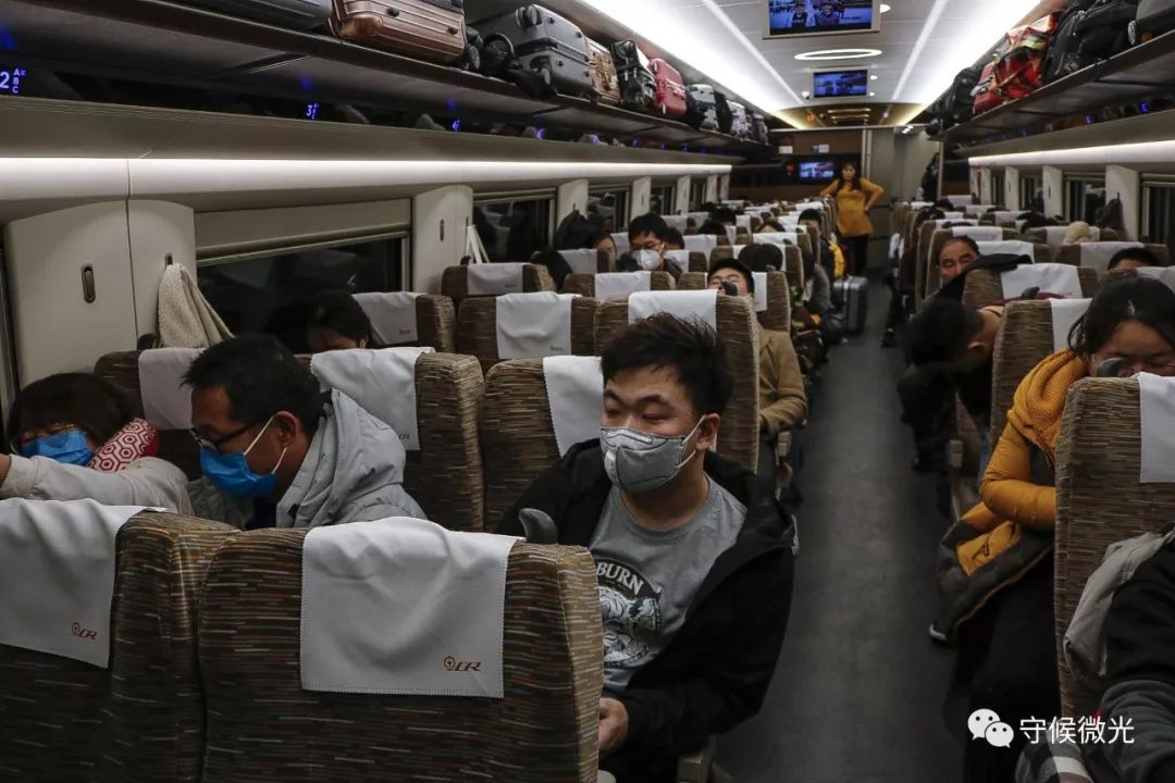 1月21日凌晨,北京西站,从北京西通往武汉的列车,乘客们已经提前戴好了口罩。中青报·中青网见习记者 鲁冲/摄