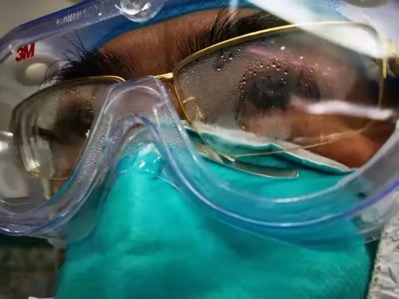 湖北省人民医院,一名医生的眼镜被水汽覆盖。湖北省人民医院 供图