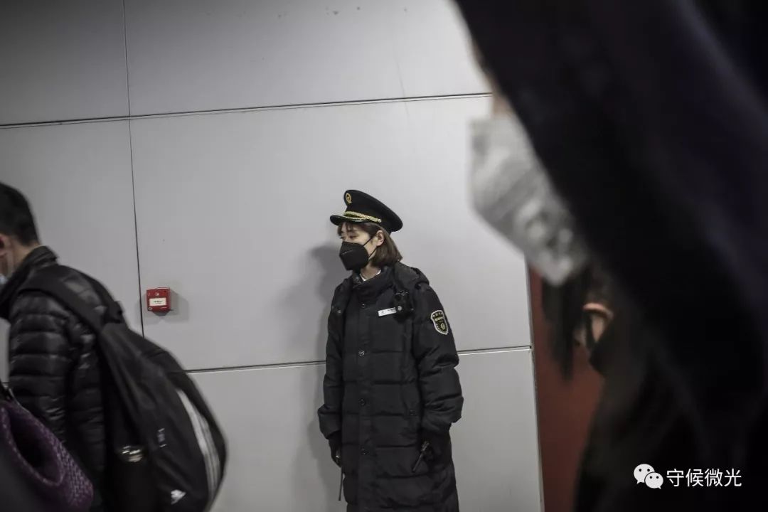 1月22日,青岛北站,一位铁路工作人员正在戴着口罩值班。中青报·中青网见习记者 孔斯琪/摄