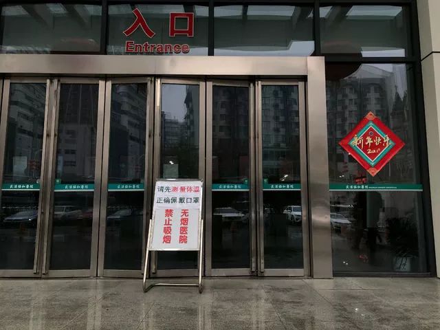 1月22日,武汉协和医院门诊大厅,提示前来就诊的患者佩戴口罩、测量体温的文字随处可见。中青报·中青网记者 李峥苨/摄