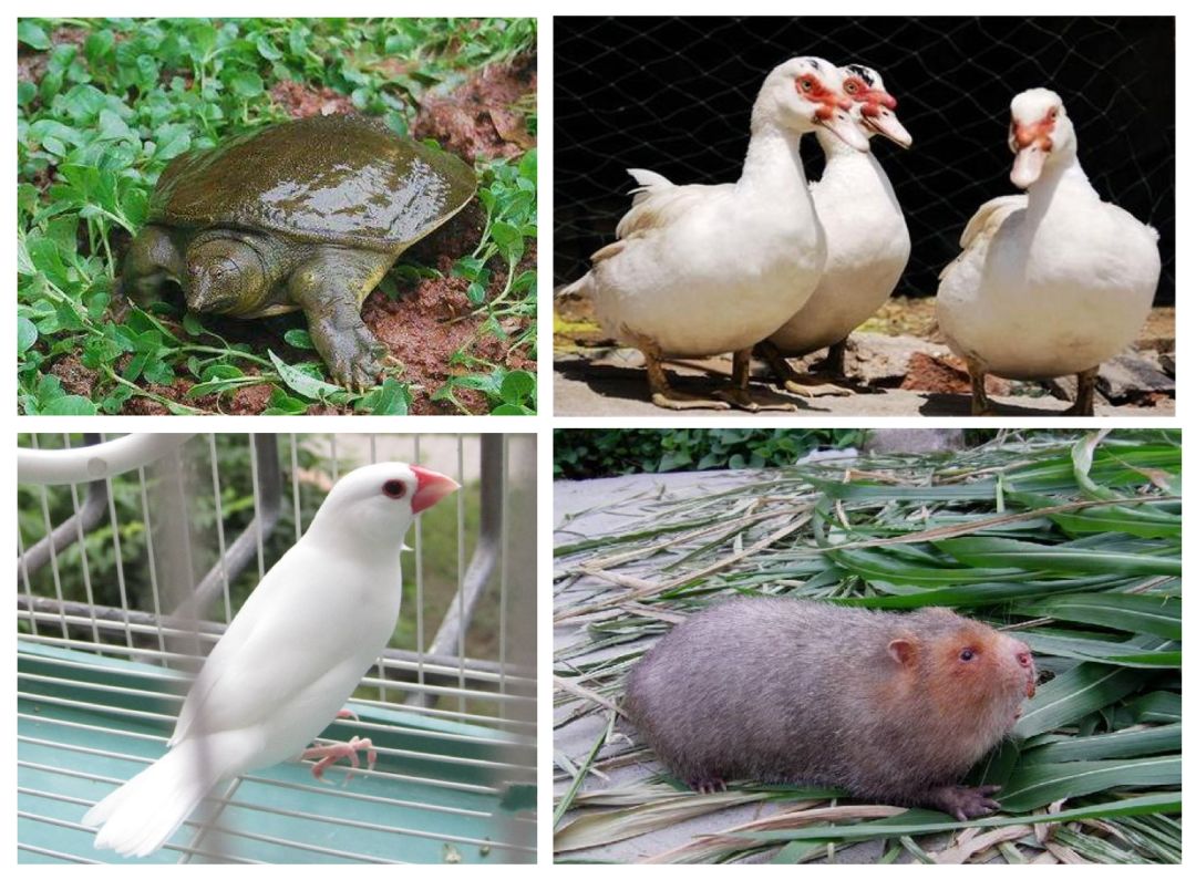 这其中,既包括早已成为日常肉用动物的养殖甲鱼、巴西龟、火鸡、洋鸭,也包括养殖繁育早已成熟,近年来在各地推广的竹鼠、豪猪、暹罗鳄、鸵鸟等特种经济动物,还包括早已成为成熟宠物的文鸟、虎皮鹦鹉、仓鼠(金丝熊)、龙猫(毛丝鼠)等,远远超出普通人眼中「野味」的范畴。