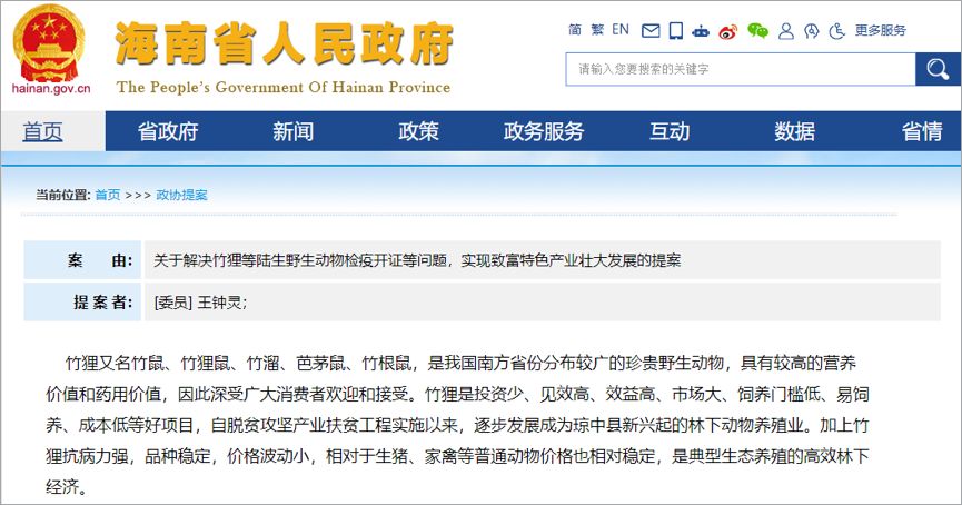 · 海南省政府官网上,能找到政协委员为养殖户发声、要求办理动物检疫证明的提案