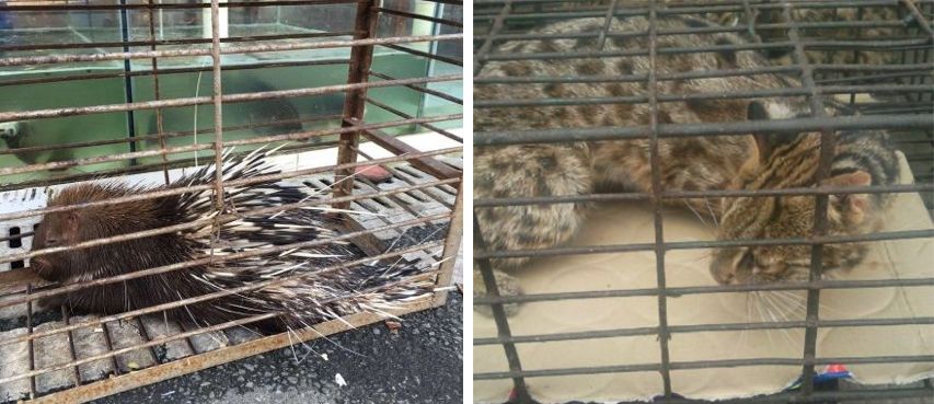 · 据记者暗访,华南海鲜市场的野味摊贩上,大概率来自人工养殖的豪猪,与显然非法来源的豹猫等动物都被关在笼子里