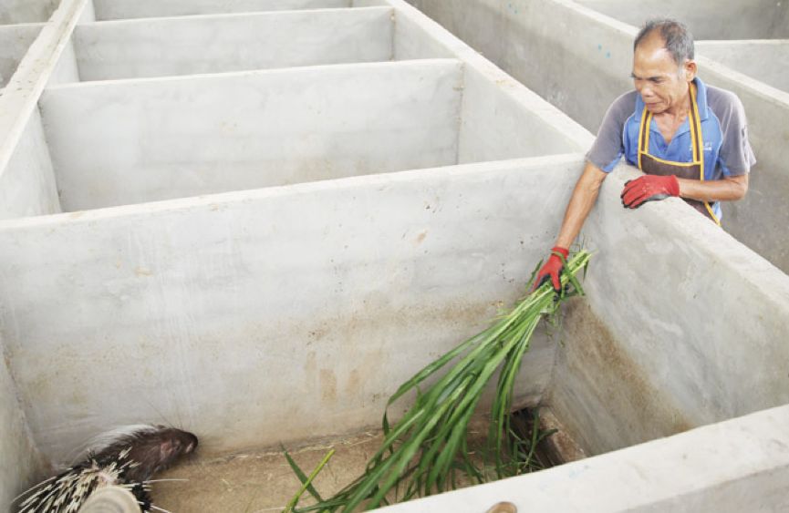 · 海南儋州官媒推介扶贫农产品配图:贫困户在给豪猪喂食