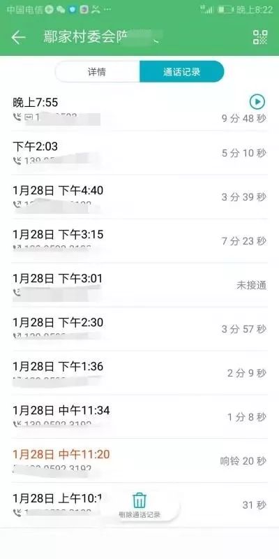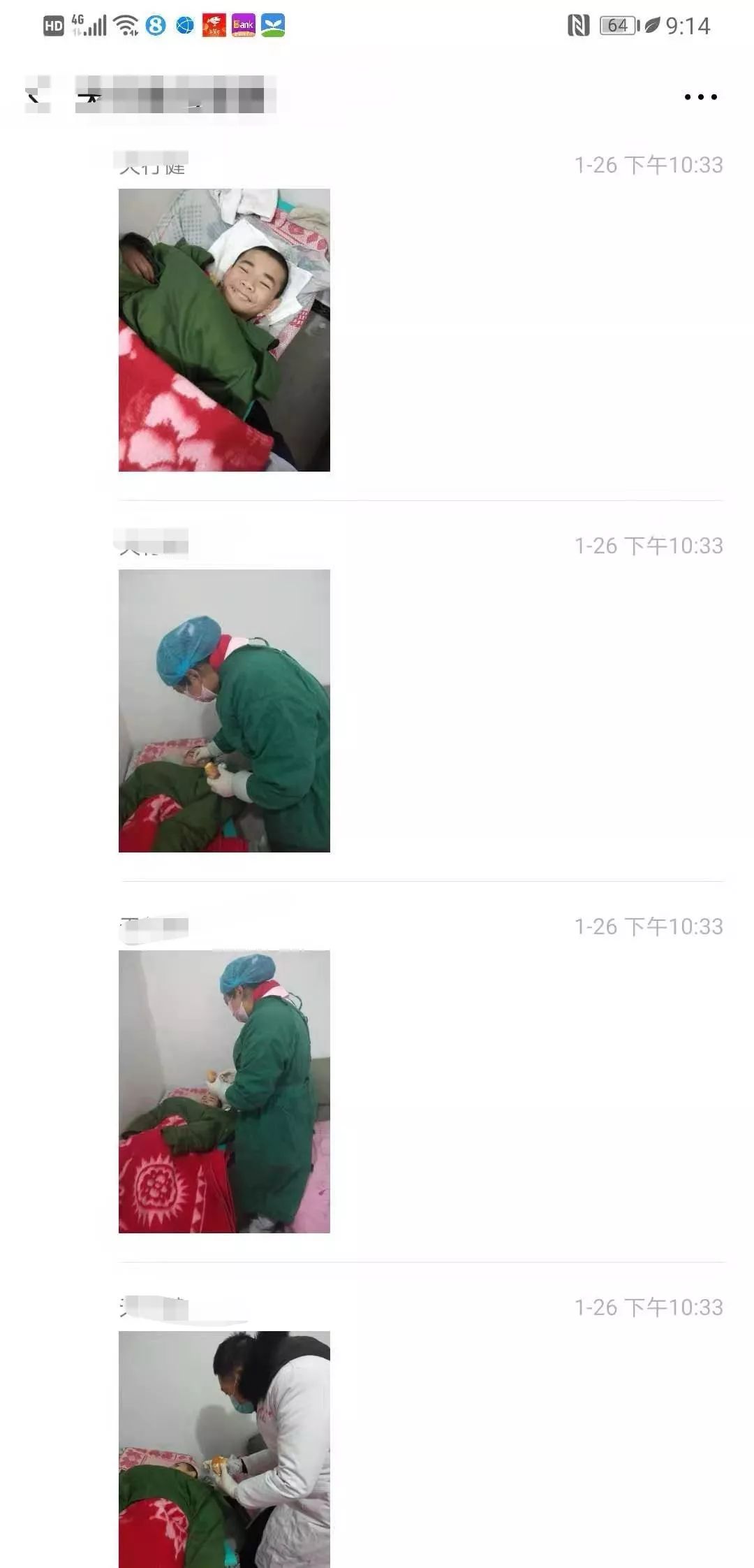 鄢小文与村委会陈主任通话截图 而在今天中午12点35分左右,朱文沁还在微信上看到了华家河镇卫生院院长发来的几张照片,上面显示,两名穿着防护服的人正抬着在躺在担架里的鄢成。