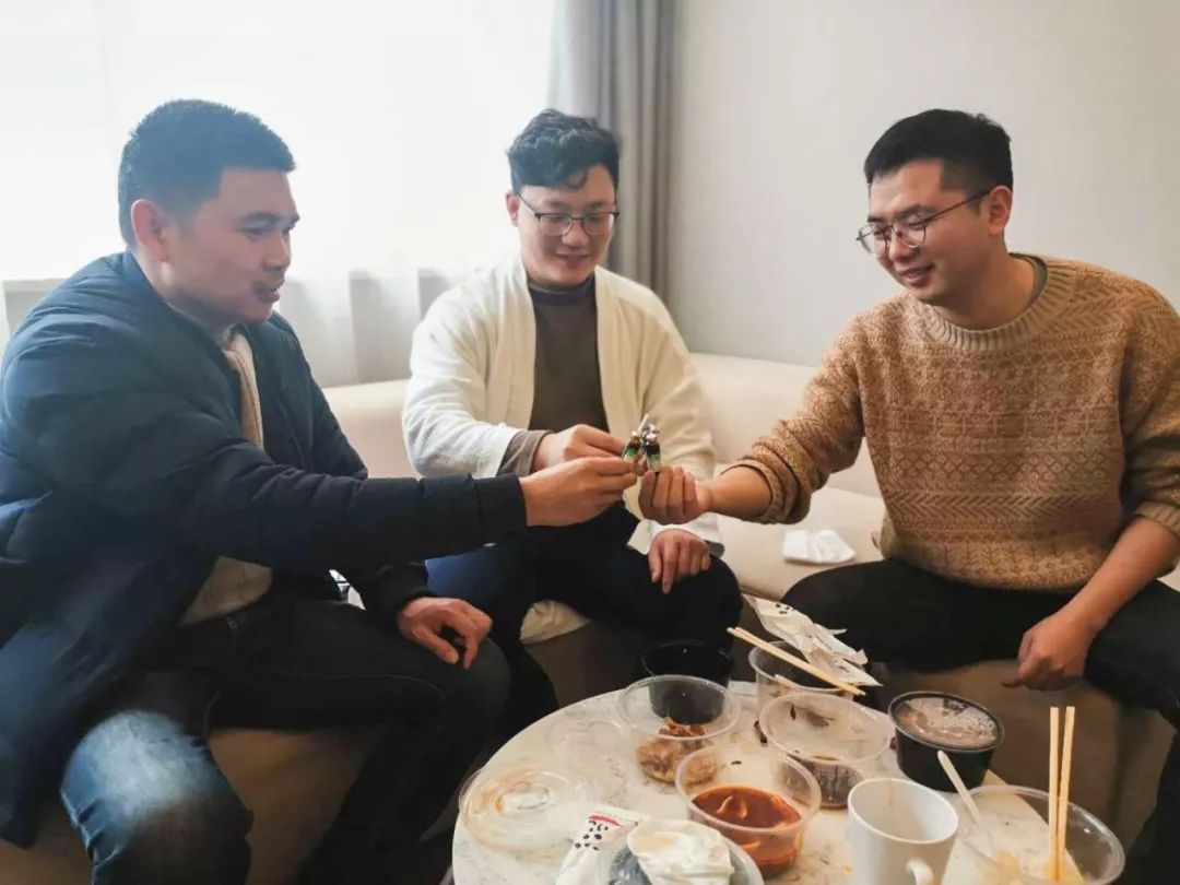 与中南医院医护人员吃年夜饭(图片来源:红星新闻)