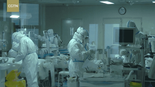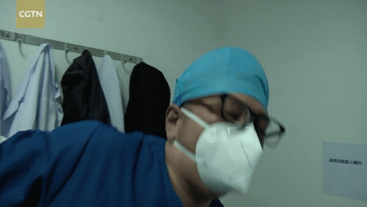 医生穿防护服的速度非常迅速(画面来源:CGTN)但是对于那些ICU的大夫来讲,他可以很快的速度,大概5分钟就自己全部穿好,非常专业。而且医生穿了好几套之后,还得在那个环境之下,去治疗病人。尤其是近视的大夫,本来就戴了一个眼镜,然后又套了大护目镜,如果再出汗,热气一喷,眼镜全是湿的,视线可能就变得模糊,但在病房又不能摘下来。