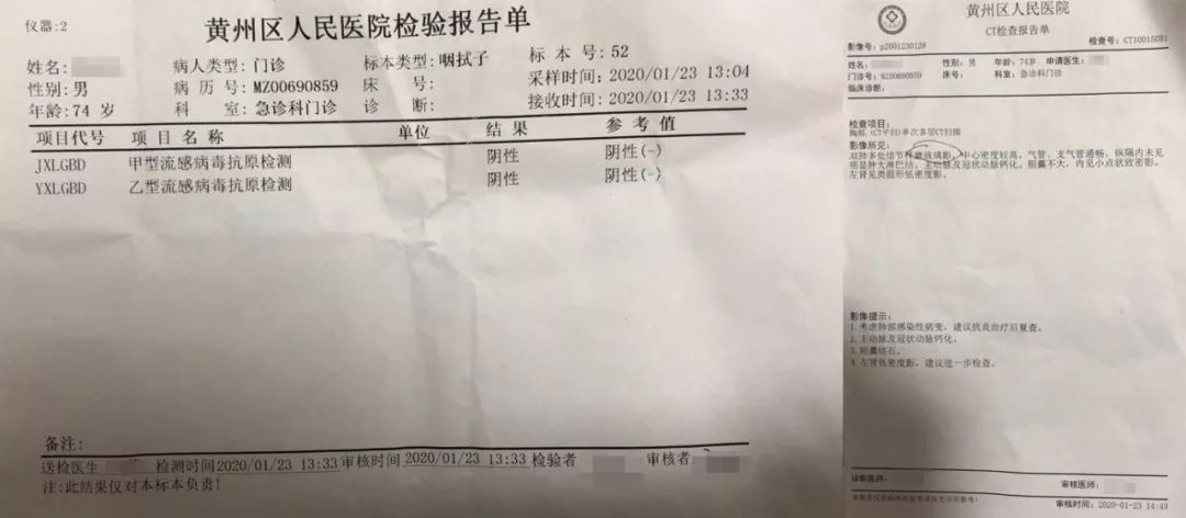 去发热门诊并不能解决什么实质性的问题。父亲照了CT,肺部显示出「磨玻璃影」,这是新型冠状病毒CT片的症状之一。同时,医生还做了进一步病毒排查,排除了甲流和乙流病毒的感染可能。「然后他们就没法进一步检测了,因为他们说现在没有试剂盒,也没法确诊。」
