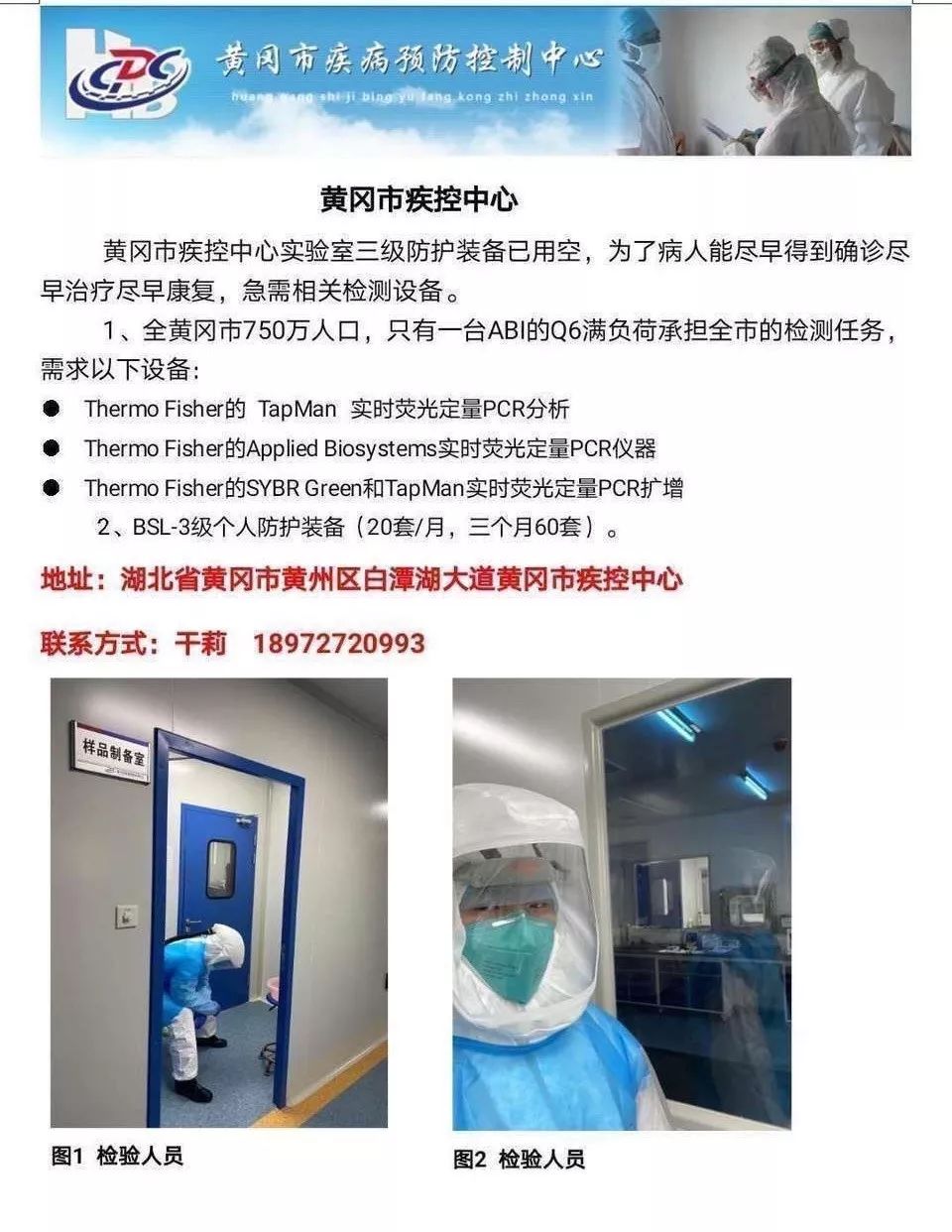 黄冈疾控中心急需相关检测设备。 图源黄冈市疾控中心