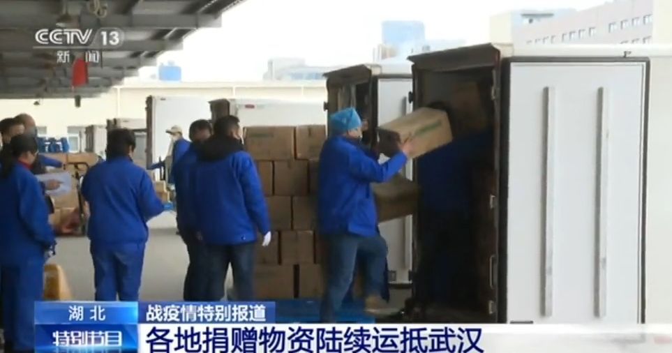 目前,各地捐赠的物资都纷纷抵达武汉,但前线的医护人员何时能真正使用到还是未知数 图源CCTV新闻频道截图