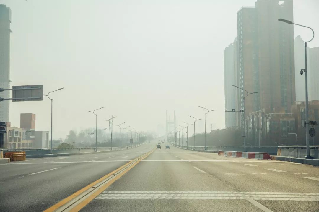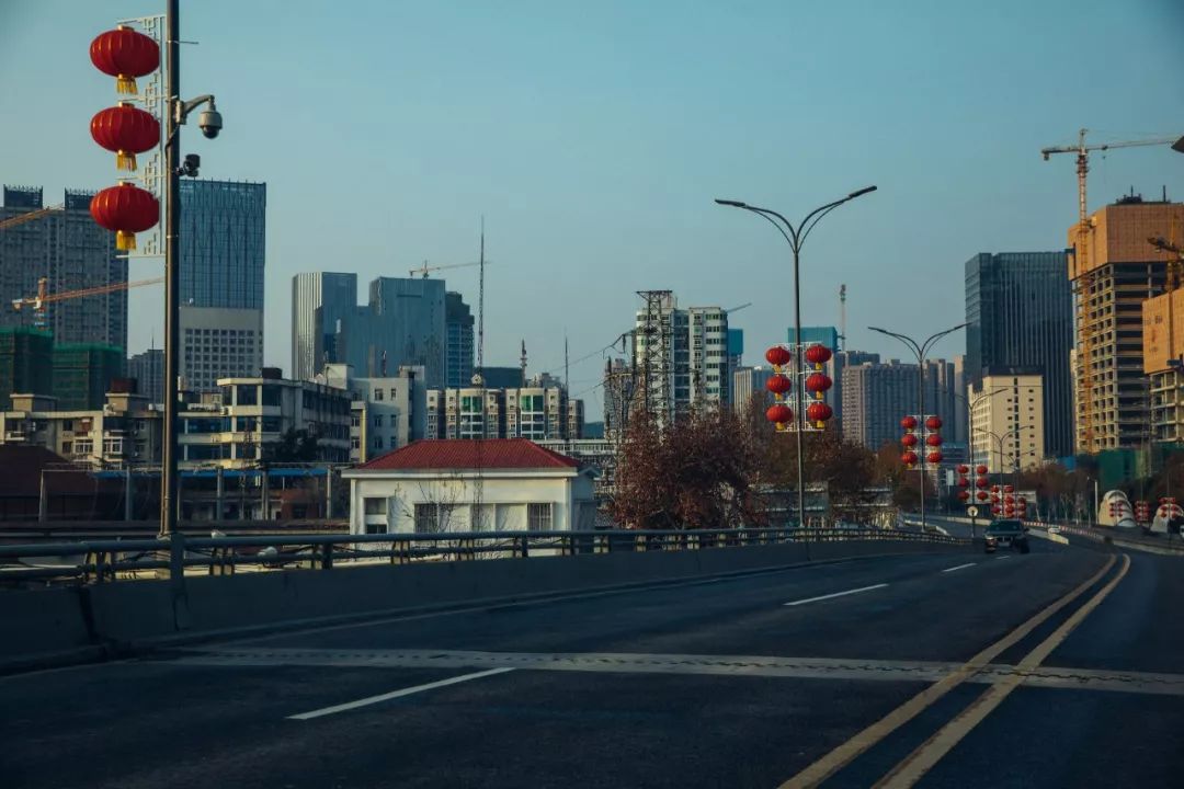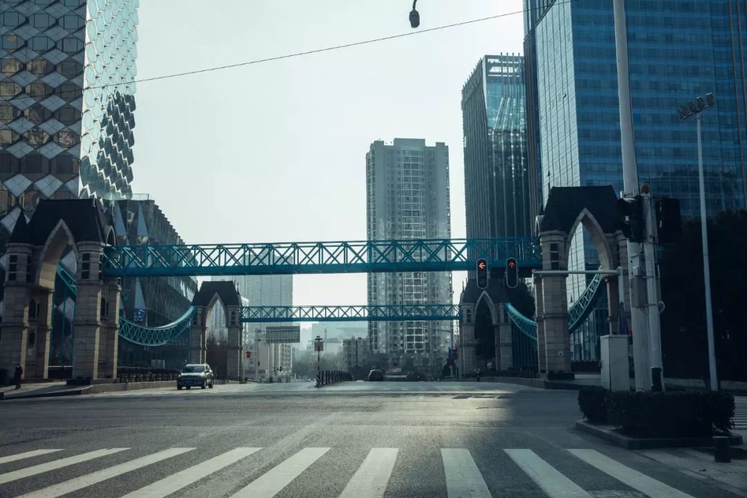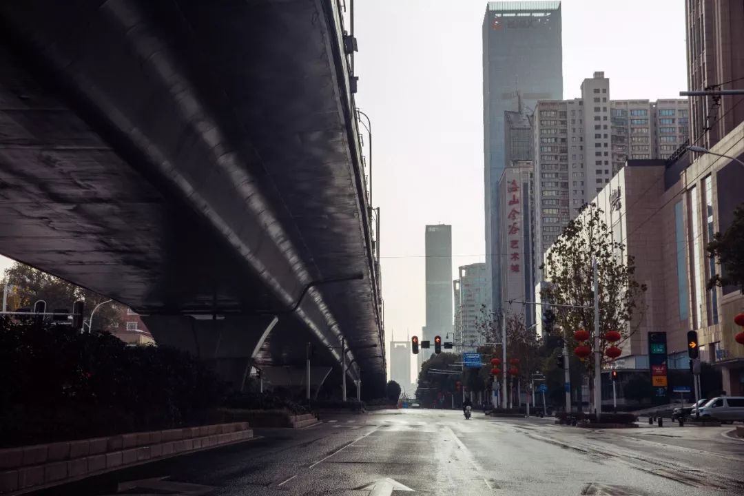 武汉的立交指引着汽车前行的道路,却不见过马路的行人和车辆。