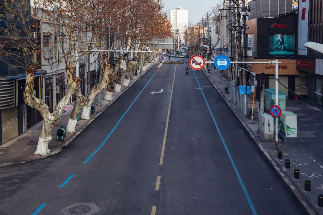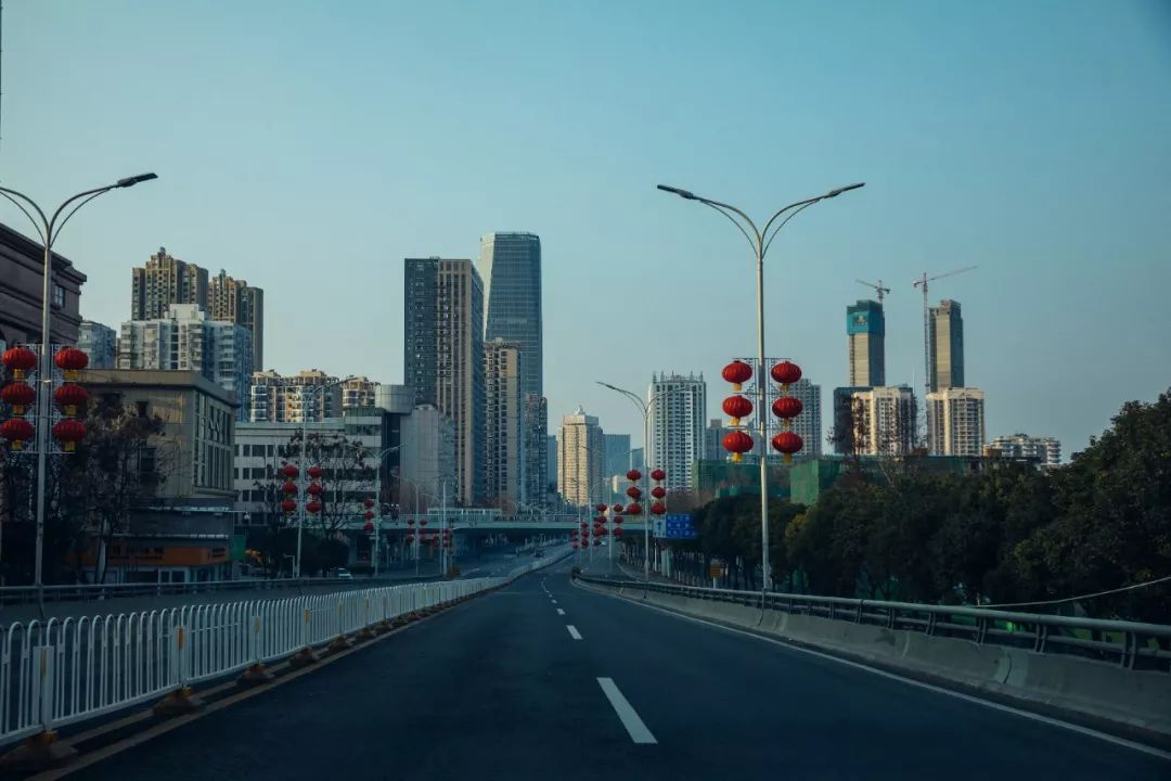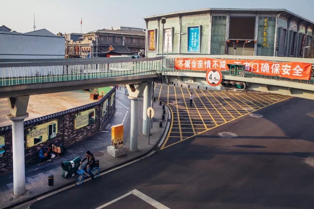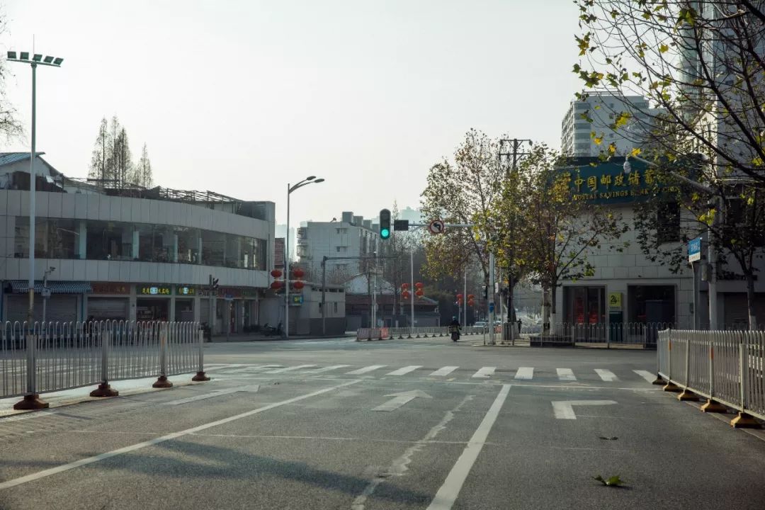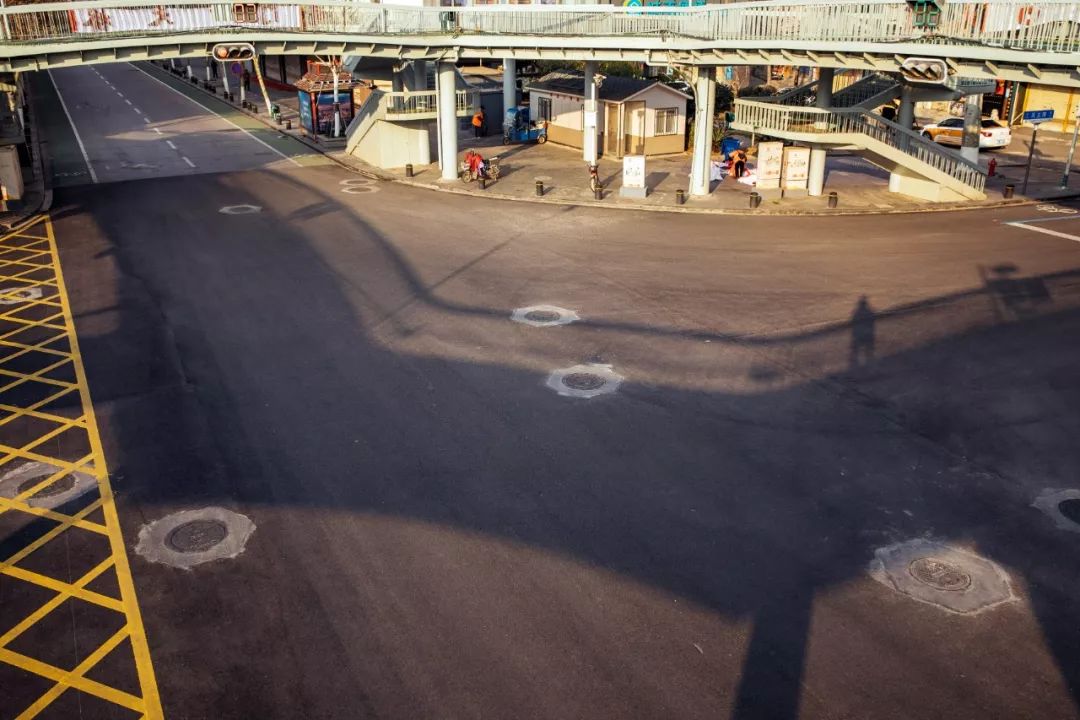 武汉的立交指引着汽车前行的道路,却不见过马路的行人和车辆。