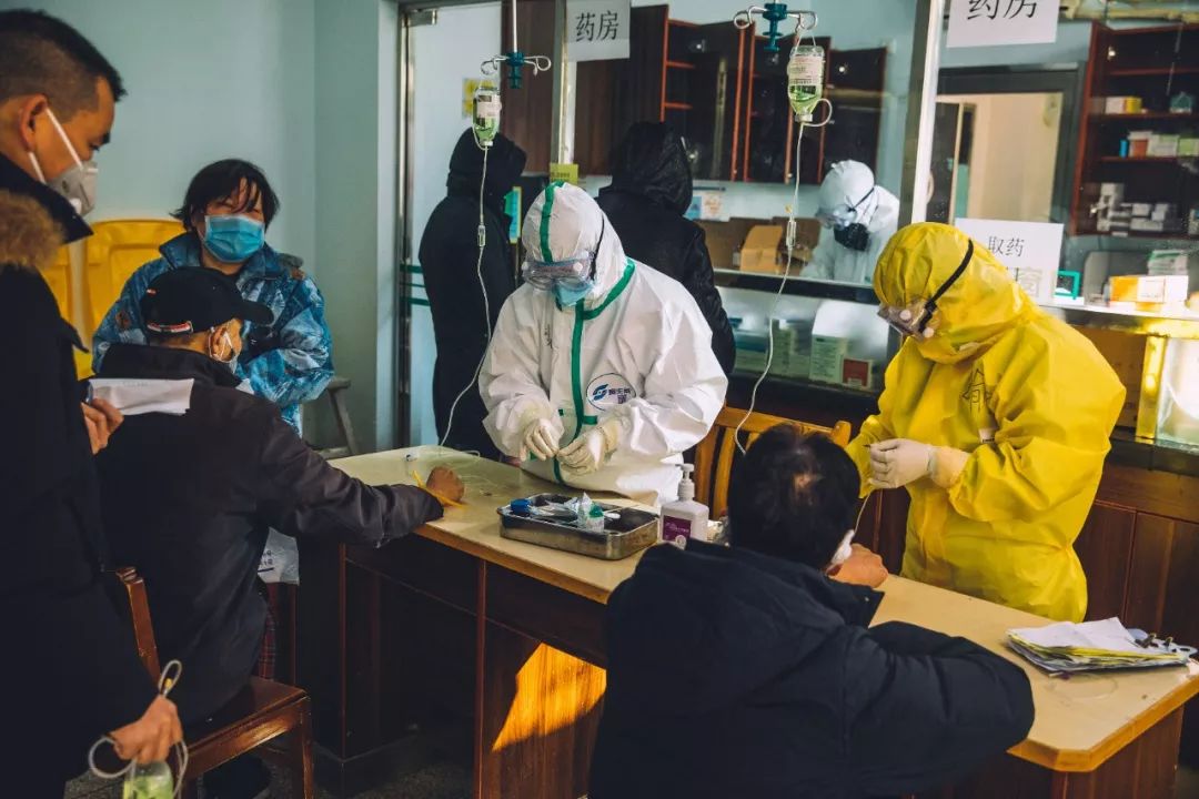 七院里聚集了不少来打吊针的人我用语言描述不出来,大家可以看看照片。为了避免感染,这些患者多是自己一个人过来,我看到许多年纪很大的老人,颤颤巍巍,也不知道他们是怎么在封城的情况下来到医院的。