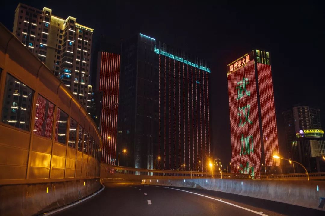 高楼上的霓虹灯写着武汉加油,大家都宅在家里,这又是给谁看呢?