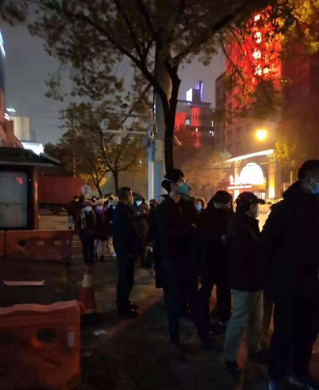 1月22日晚上,武汉市第七医院门口排队的人群。