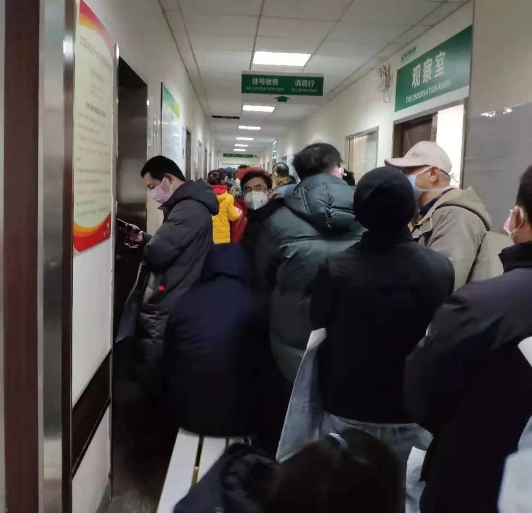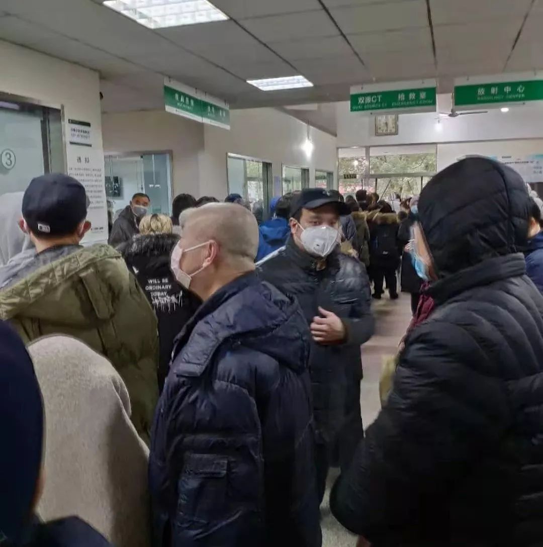 到晚上10:00左右,我妈告诉我,她后面已经至少排了100多人,还有人陆续到来。10:40左右,医院开了一扇门,一次只让进三个人,进去的人先查血,如果严重就收,不严重的依然不能收。我爸爸折腾了一天,病了以后就几乎没吃东西,那时已经走不动路了,他几年之前还做过心脏支架手术。我要在家带孩子,也不能出去。我今天在家哭了一天,真的忍不住想,万一人哪一瞬间没了,该怎么办?