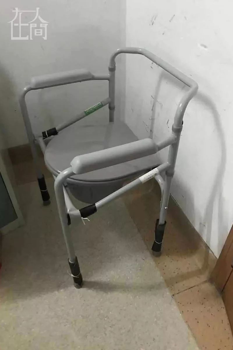 ■ 在妈妈的病房,爸爸就是在这张椅子上坐着过夜的。 妈妈的病房有四个病人,爸爸没地方睡,就让我们买了那种和便桶一体的凳子,他在上面坐一夜。22号晚上,爸爸也做了检测。 但隔天下午,感染科病房就不让爸爸陪护了。爸爸取了检测结果,在医院大楼里坐着,不想离开妈妈。我说那我去医院正对面开一个房间。那里从窗子可以直接看到妈妈隔离的楼,直线距离两三百米。我去找酒店,他们说不对外营业了。
